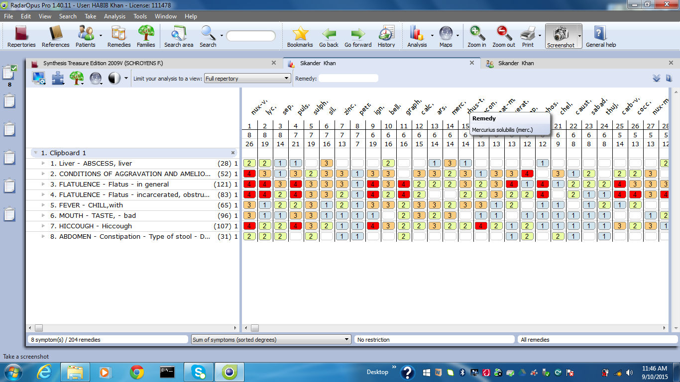 First prescription - Nux vomica - 200 (Single dose) Second prescription - Merc sol - 30 (Multiple dose)